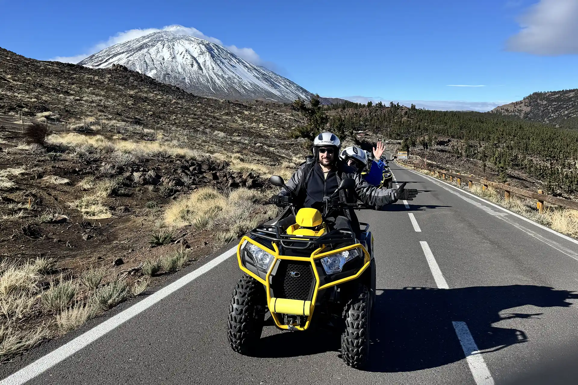 No. Este tour es 100% asfalto. Es una ruta panorámica por carretera («Road Touring») pensada para disfrutar de las curvas y del paisaje volcánico respetando el medio ambiente del Parque Nacional.